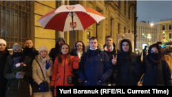 Те, кому не достался бюллетень, стали каждый день устраивать митинги под стенами дипведомства. Почти сразу белорусам запретили стоять с плакатами, потом – вешать плакаты на решетку посольства и класть свечи и цветы на подоконники. Несколько месяцев полицейские разрешали людям стоять у здания с бело-красно-белыми флагами, но в итоге в конце декабря забрали всех участников митинга в полицию. И с тех пор белорусам приходится устраивать в Петербурге немногочисленные акции в разных частях города. Для них выбирают символичные места. Во время одной из последних встреч обсуждали Всебелорусское народное собрание.